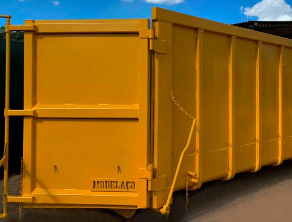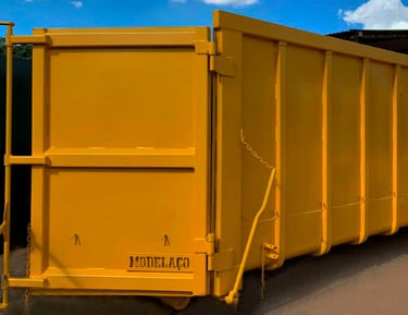 Alta capacidade para grandes volumes de resíduos. Indicada para empresas, obras industriais ou eventos de grande porte.